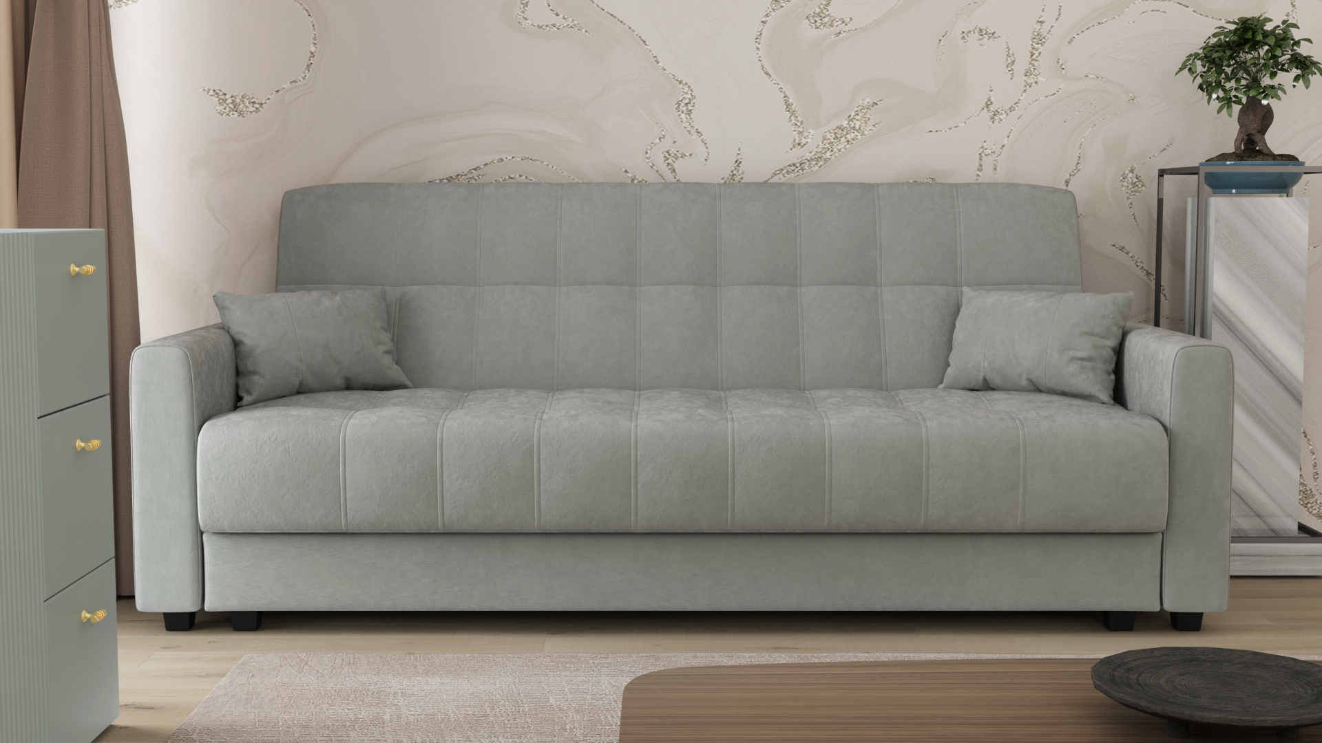 Материал: ТканьМеханизм трансформации дивана «Книжка»ДхВхШ: 2350х950 (580)х1000 (1280)ммСпальное место 2050х1230